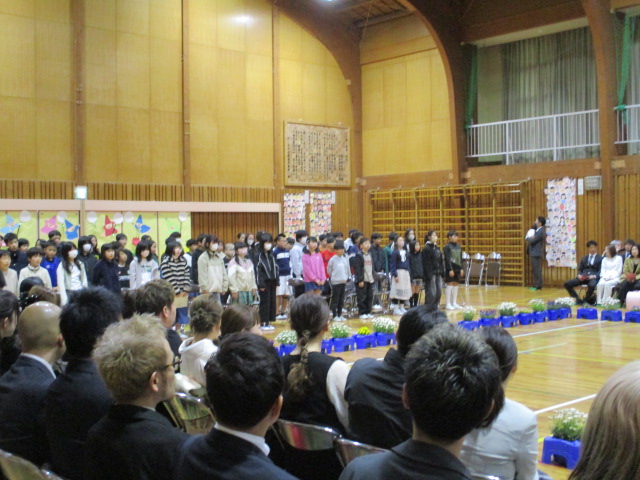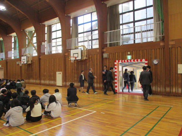 神倉小を転任・退職される先生方の離任式を行いました。はじめに、校長先生からの紹介があり、その後、先生方からお別れの挨拶がありました。新しい環境でのご活躍を祈っています。