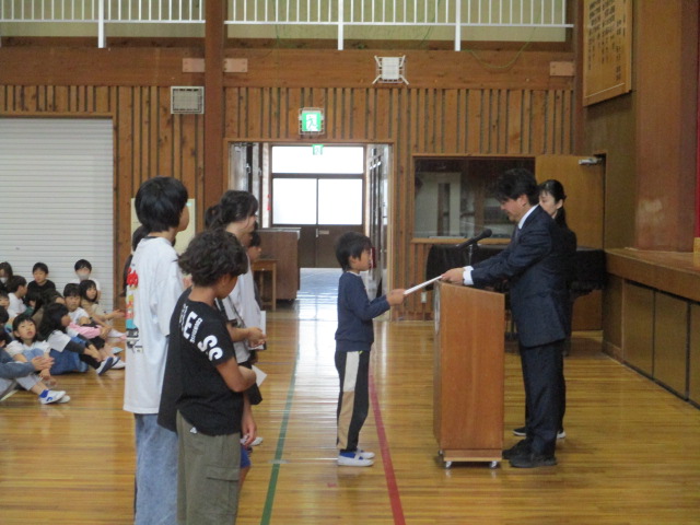集会の時間に学級委員の任命式があり、4年生以上の各クラスの学級委員さんに任命書が手渡されました。少し緊張した面持ちでしたが、みんな大きな返事をして任命書を受け取っていました。クラスの代表としてみんなをまとめていってほしいと思います。