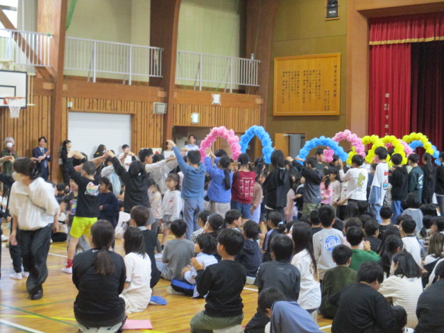 体育館では、簡単な自己紹介を行った後、好きなものなどについて話し合った後、じゃんけん列車を楽しみました。短い時間でしたが、仲を深める良い機会となりました。
