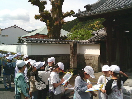 社会科の学習で、子ども達が学校の北側へ校区探検に出かけました。速玉大社や丹鶴ホールの近くを通りながらたくさんの発見をしてきました。