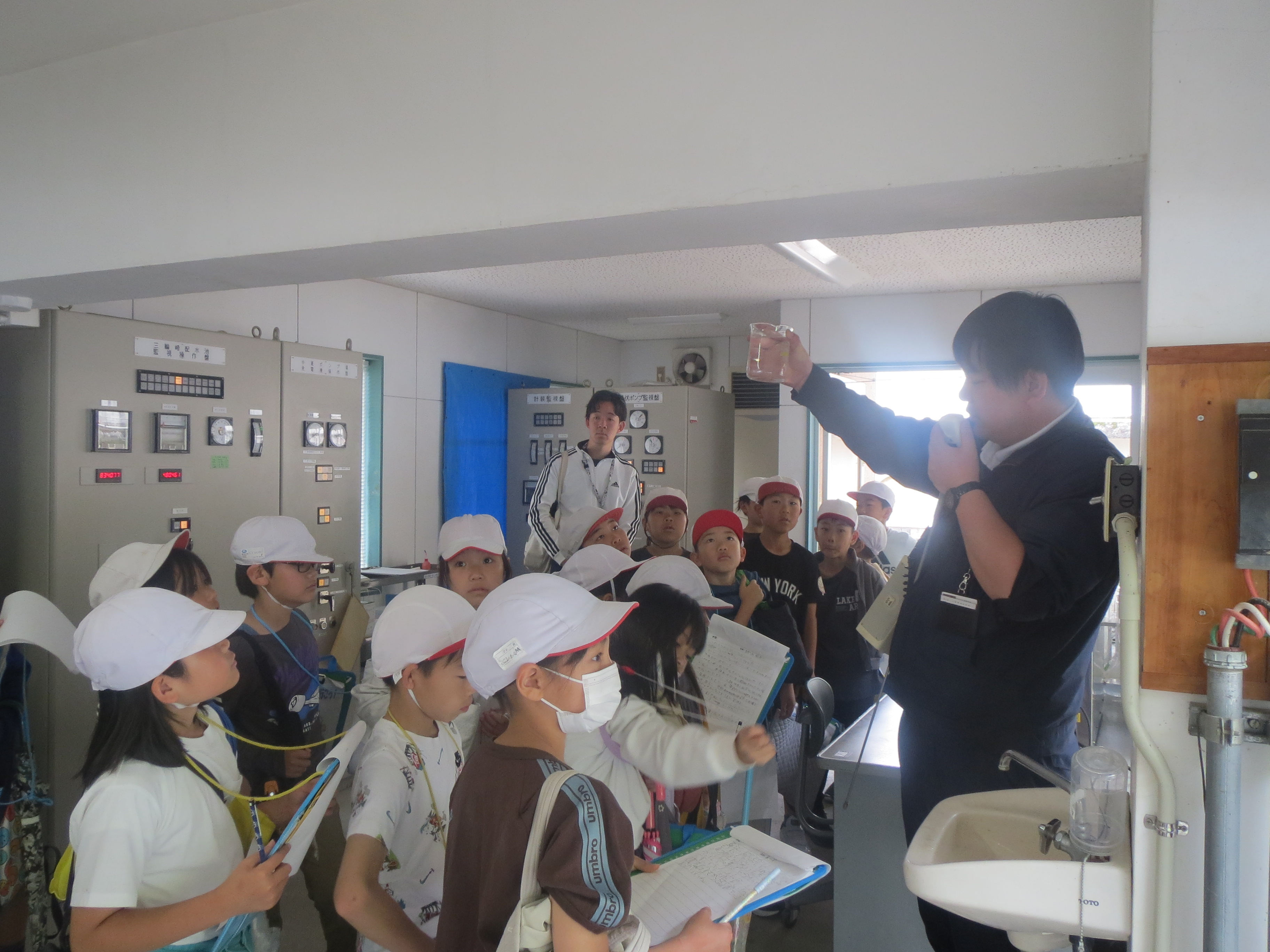 社会科見学で浄水場を訪れました。川の水がいくつもの大きな池を通り、砂でろ過され、消毒されて安全な水道水になる仕組みを詳しく学びました。 24時間体制で水を守る人々の工夫に、子どもたちは驚きの連続。蛇口の向こう側にある努力を知り、一滴の水を大切にする気持ちが芽生えた一日だったと思います。