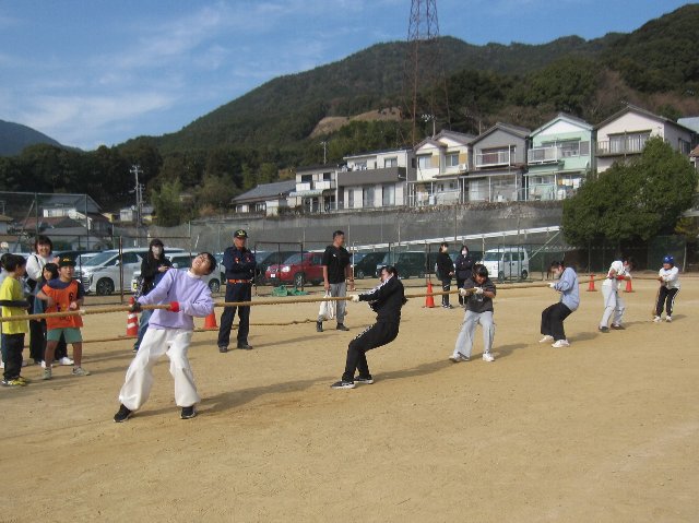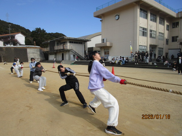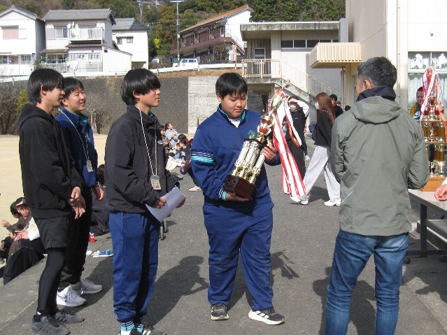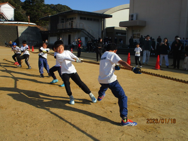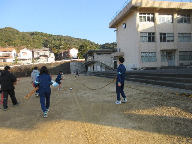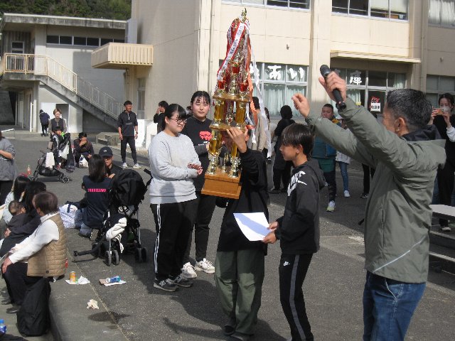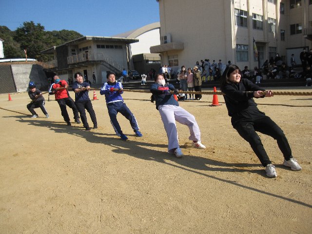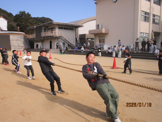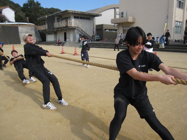 やろら会では、校区の皆さん・保護者の皆さん・学校が一体となって、地域の宝である子供たちをみんなで見守り、育てていくことを目的として綱引き大会を開催しています。晴天の下、選手として約300人、応援や観戦の方を含めると500人以上の方々が参加してくれました。また、ボランティアとして本校中学生15名が参加し、早朝の準備から大会運営、片付けまで協力してくれました。今年はボランティアの数が例年より少なく、15名は休む間もなく本当によく頑張ってくれました。