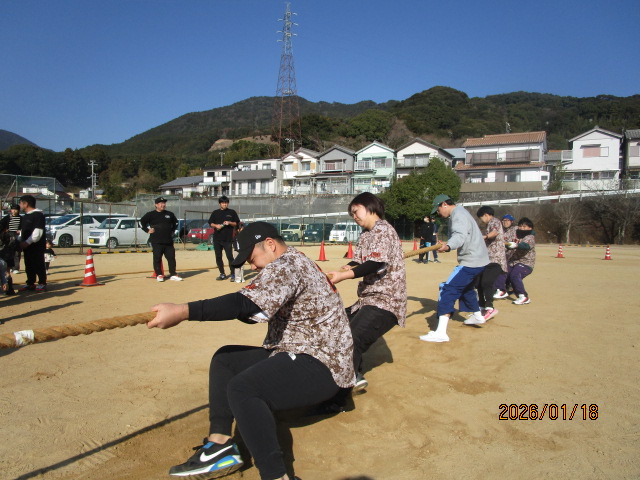 1月18日(日)に光洋中学校学校運営協議会「やろら会」主催 光洋地区交流綱引き大会が開催されました。今年は、昨年を大幅に上回る38チームの申込みがあり、大いに盛り上がりました。地区対抗戦では三輪崎・佐野・蜂伏の3地区が出場してくれました。