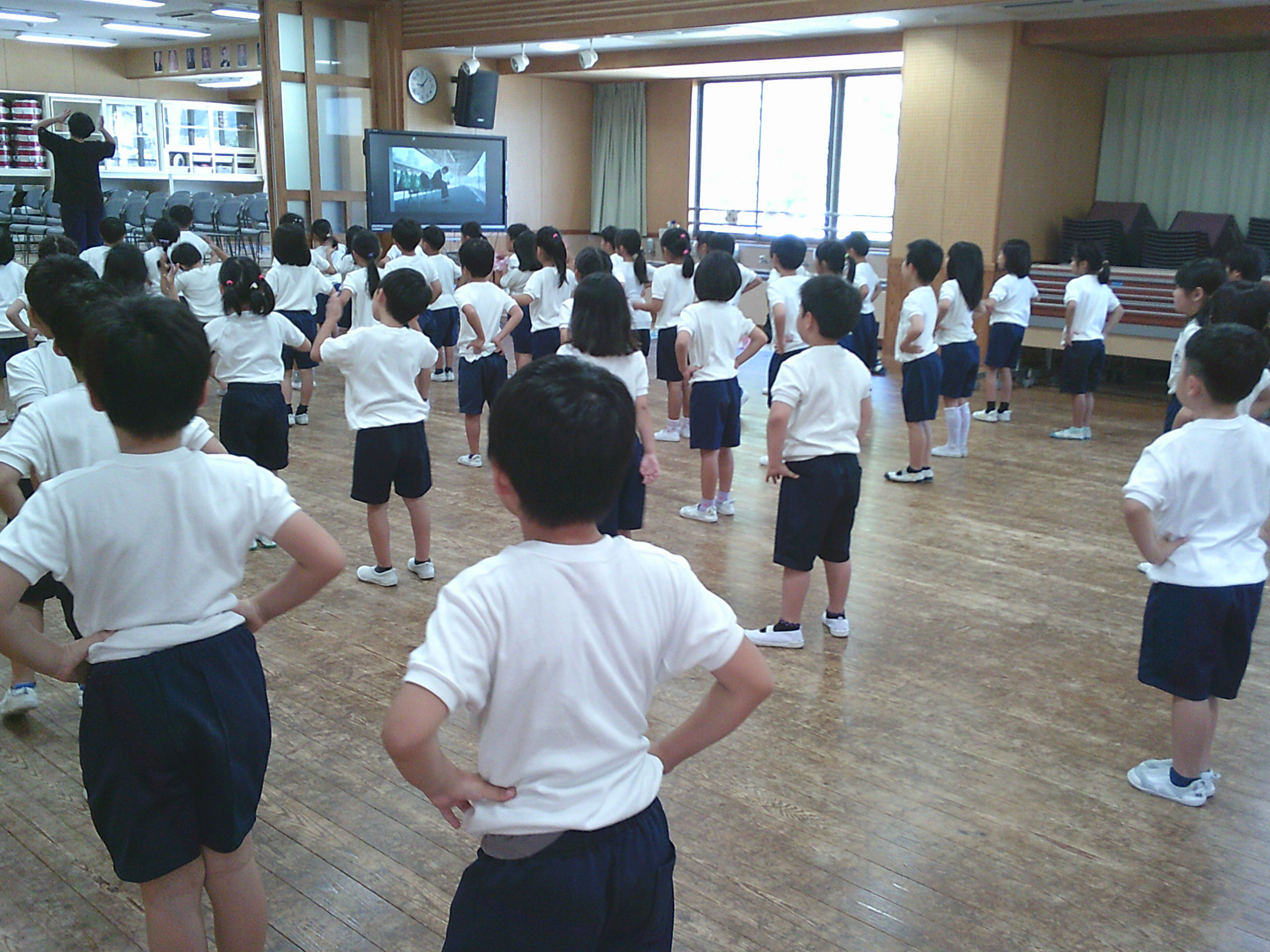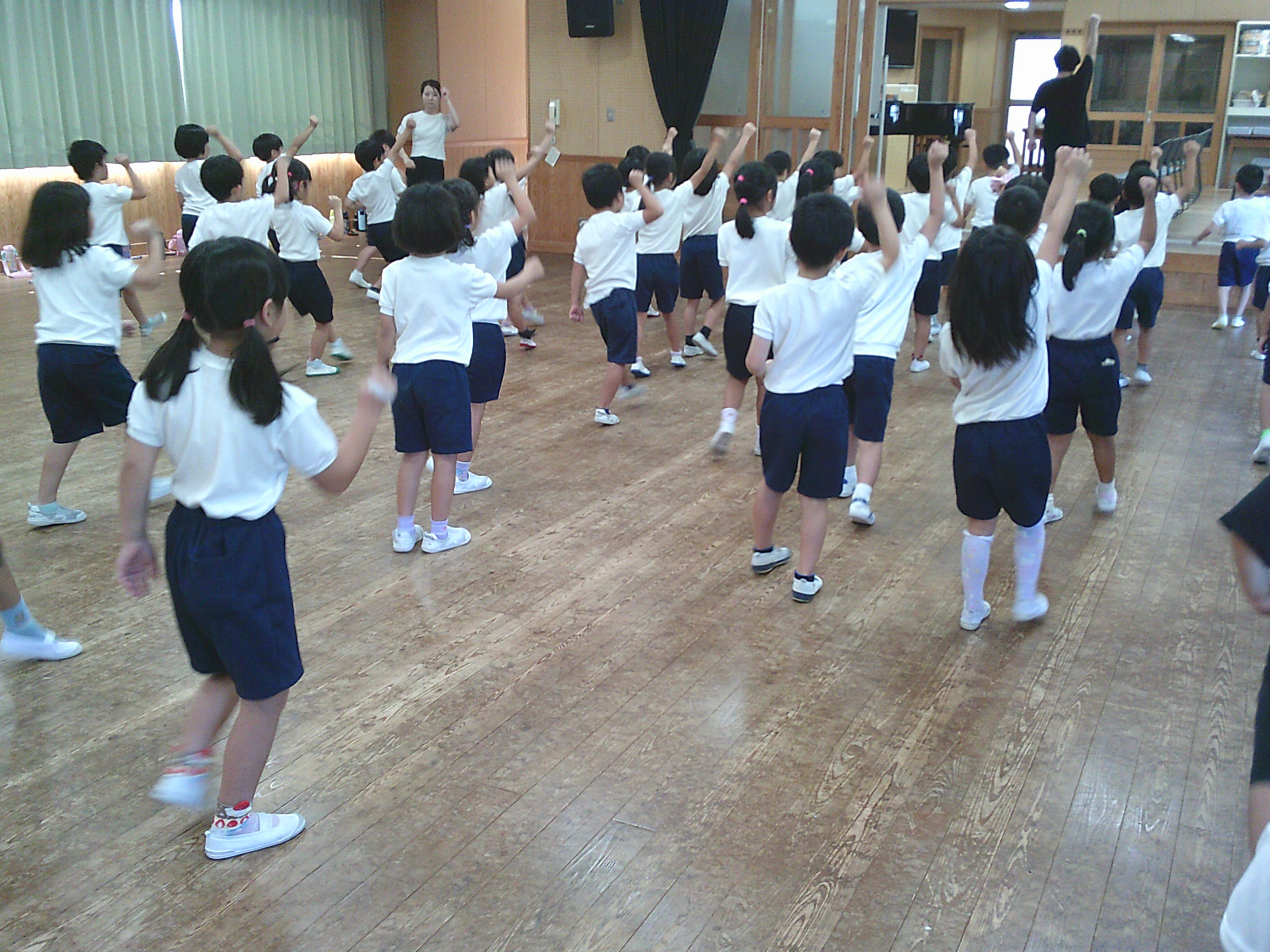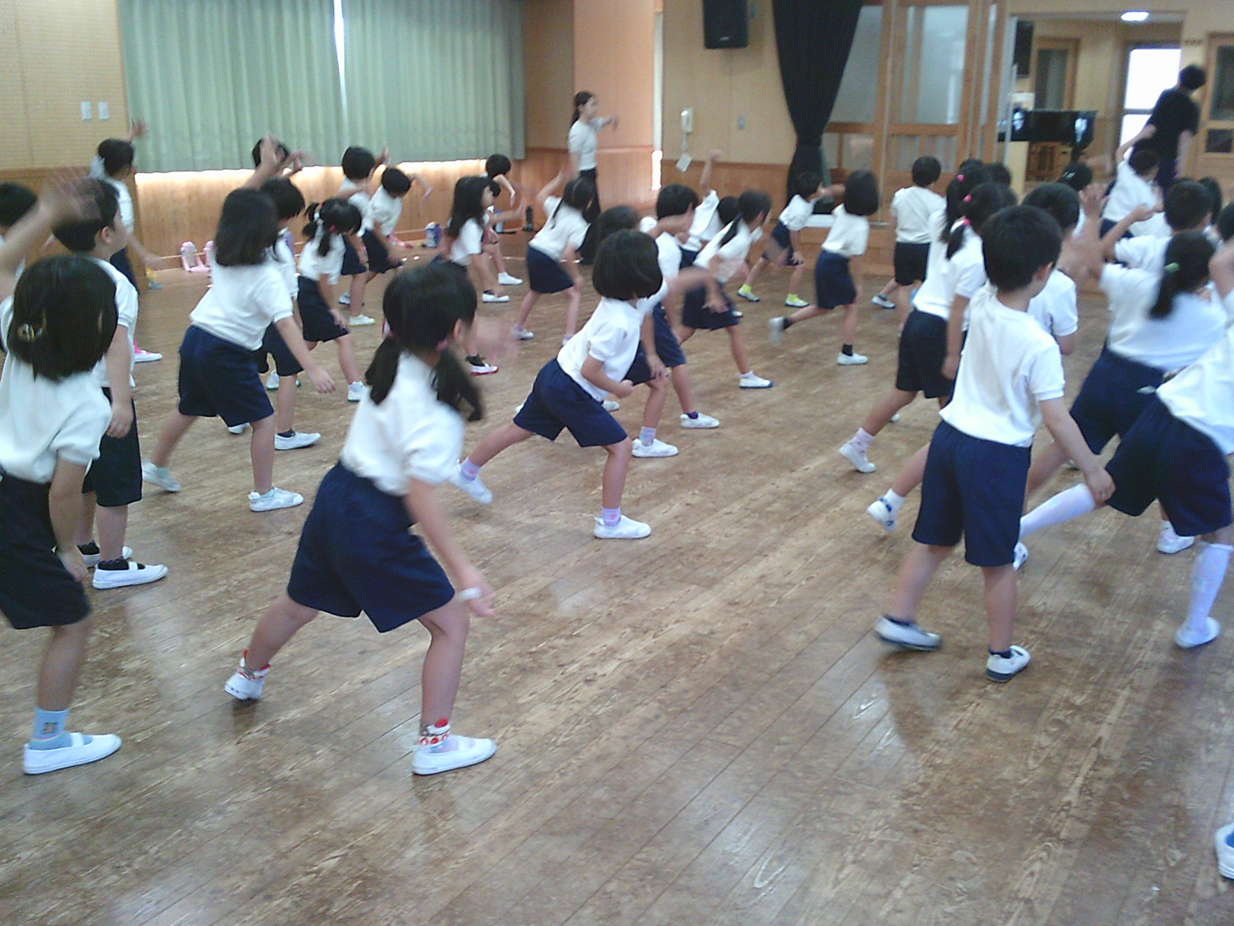 運動会の練習が始まりました。音楽に合わせて腕を大きく振ったり、足を上げたりとみんな楽しそうにダンスの練習をしています。体育の授業のときだけでなく、休憩時間にも「先生!音楽かけて!」と言って友達と練習している姿もたくさん見られます。もう振り付けを覚えている子がいて、上達の早さに驚きます。本番が楽しみですね。