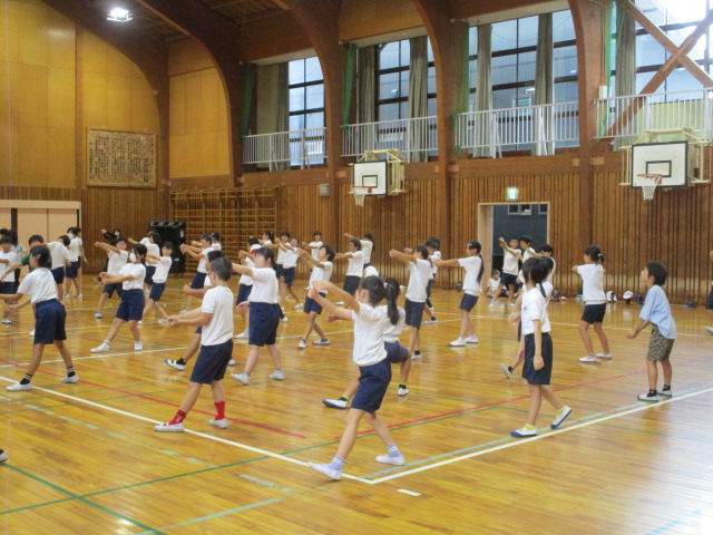 今日は1時間目に全校児童で開会式、閉会式の整列練習や紀州っ子かがやきエクササイズを行いました。本番で最高の演技ができるよう、残り2週間しっかり練習していきます。