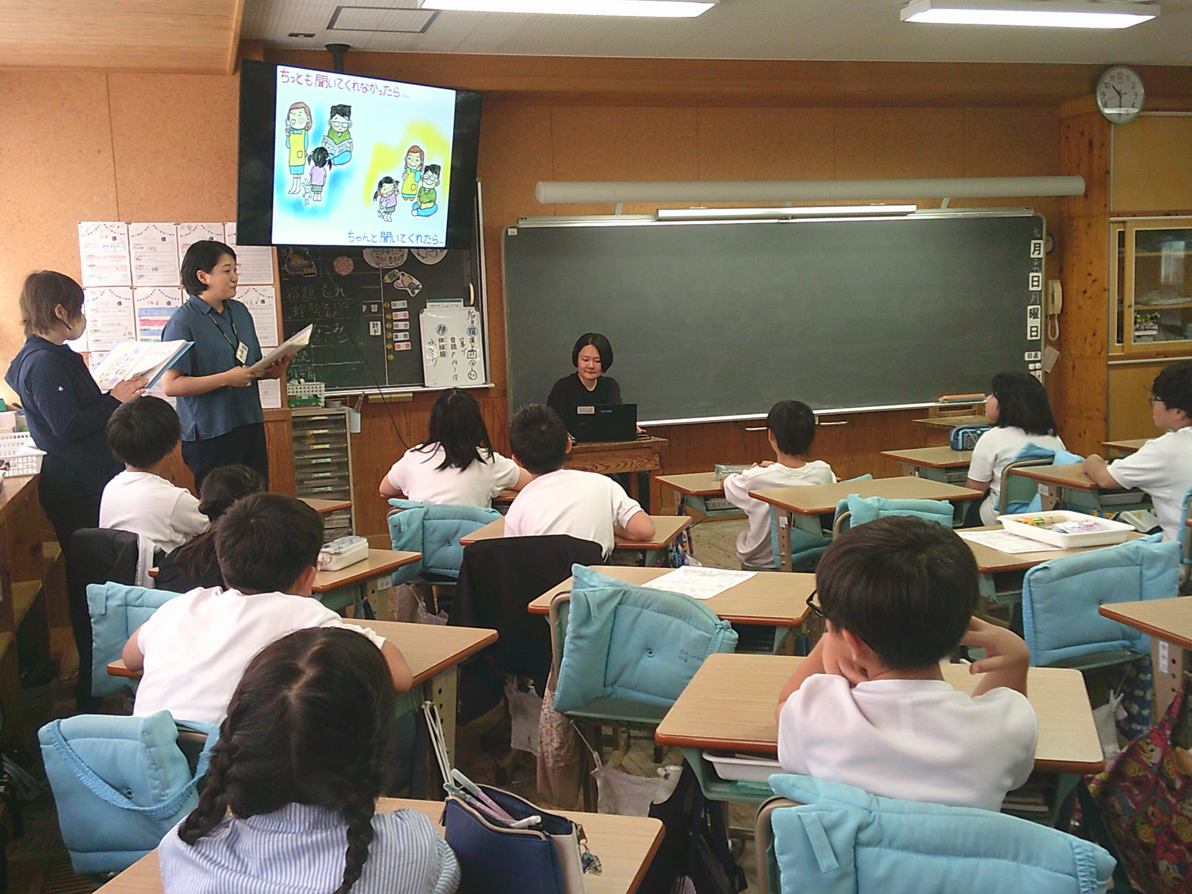 4年生は、総合的な学習の時間に「認知症」について学びました。同じことを繰り返し聞いてきたり、道に迷ってしまったりすることがあると聞き、最初は驚く姿も見られましたが、「優しく声をかけたい」「一緒に歩いてつれていってあげたい」といった温かい意見が多く出されました。子どもたちは、自分たちのおじいちゃんやおばあちゃんを思い浮かべながら、認知症になっても安心して暮らせるようにするにはどうすればよいかを真剣に考えていました。この学びをきっかけに、家族や地域の人々に思いやりの心をもって接してほしいと思います。