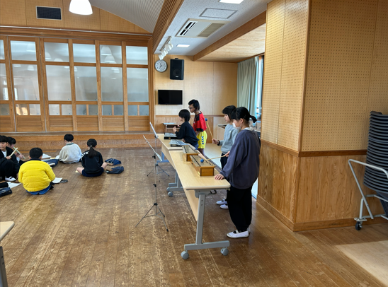 音楽の授業で、子どもたちは合奏に挑戦しています。 それぞれが担当する楽器の役割を理解し、友達の音をよく聴きながら、一つの音楽をつくり上げる活動です。はじめはリズムやタイミングを合わせることに苦労する様子も見られましたが、練習を重ねる中で声を掛け合い、少しずつ音がそろっていきました。 これからの成長が楽しみです。