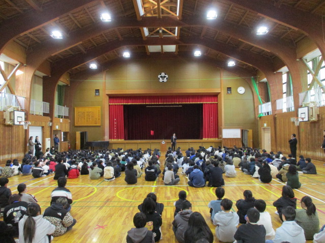 体育館にて3学期の学級委員任命式が行われ、4年生以上の学級から選出された学級委員が校長先生より任命書を受け取りました。1年のまとめとなる3学期。学級委員さんを中心にクラスで協力し、3月の修了式に向かっていきたいと思います。