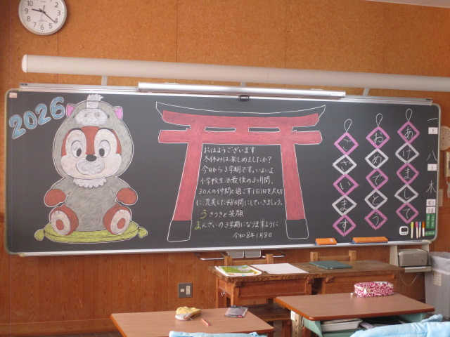 3学期の始業式がオンラインで行われました。校長先生と児童会代表児童から新年の挨拶と3学期に向けてのお話しがありました。その後の学級活動では、冬休みの宿題提出や、3学期の目標を書くなどの取組が見られました。3学期は短い期間であり、また学年のまとめとなる学期です。一日一日を大切にしていきましょう。