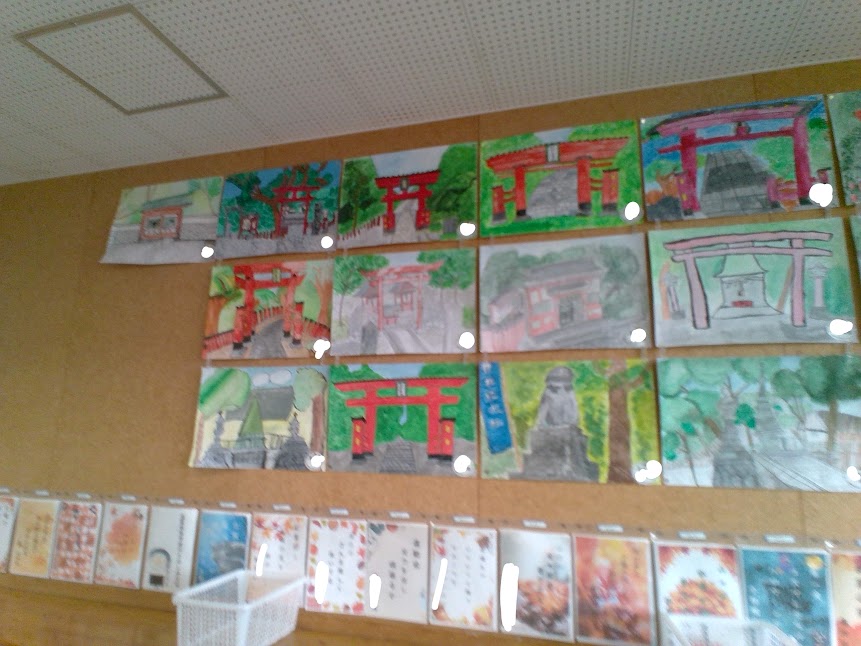 6年生は9月に速玉大社へ行き写生会に行きました。 色の塗り方や濃さに気をつけて素晴らしい作品を仕上げました。 みんな描く物は違いましたが一人ひとりが頑張りました。